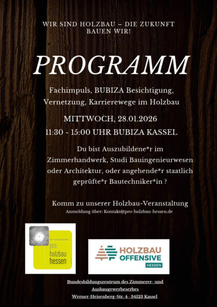 Wir können den Holzbau von heute gemeinsam weiter ausbauen. Von der Brücke bis zum mehrgeschossigen Hochhaus, alles ist in Holzbauweise möglich. Die Erkenntnisse unserer Clusterinitiative „pro holzbau hessen“ stammen aus Informationen und Know-how eines eng gestrickten Netzwerkes aller Bereiche der Holzbranche.